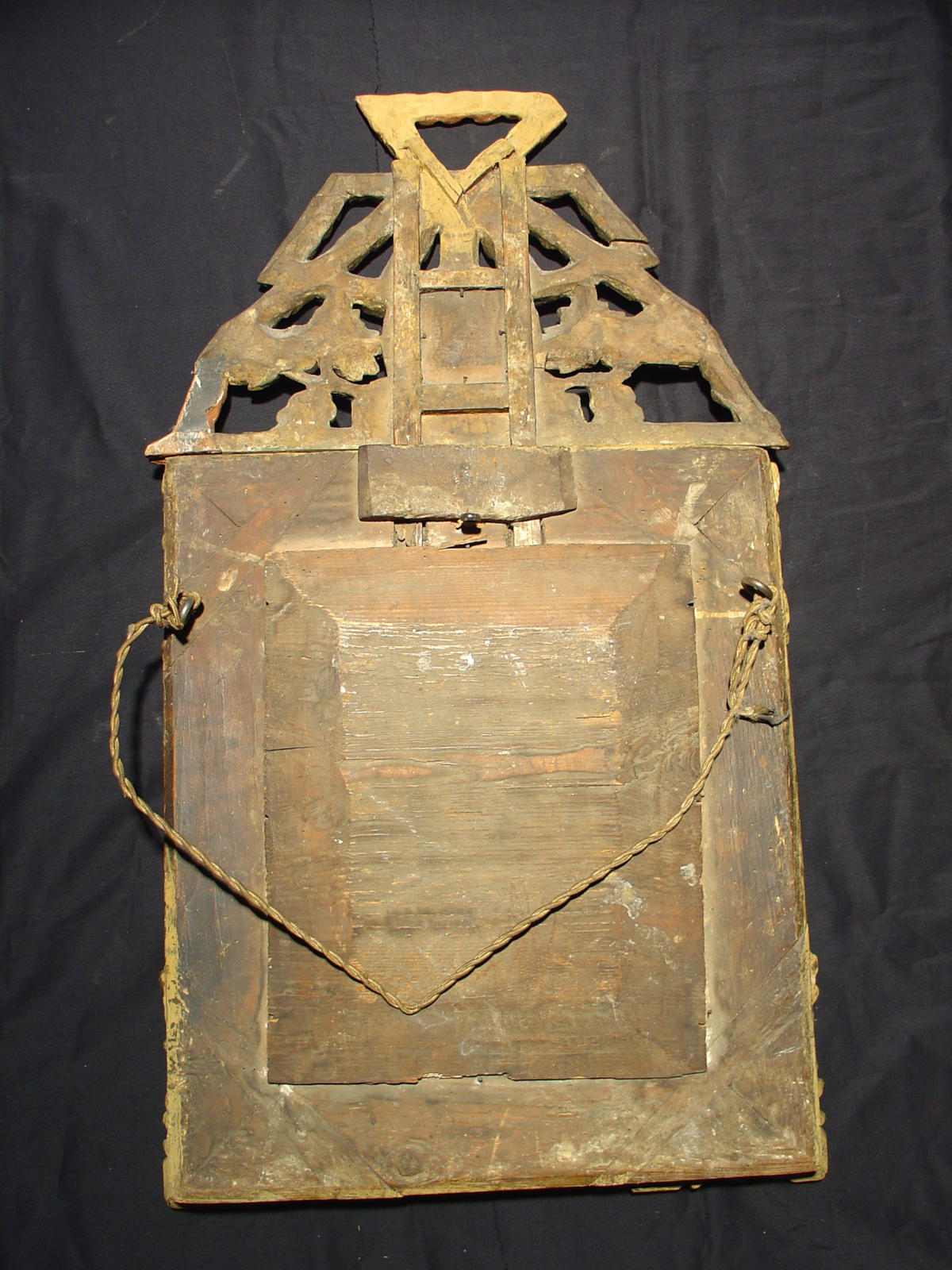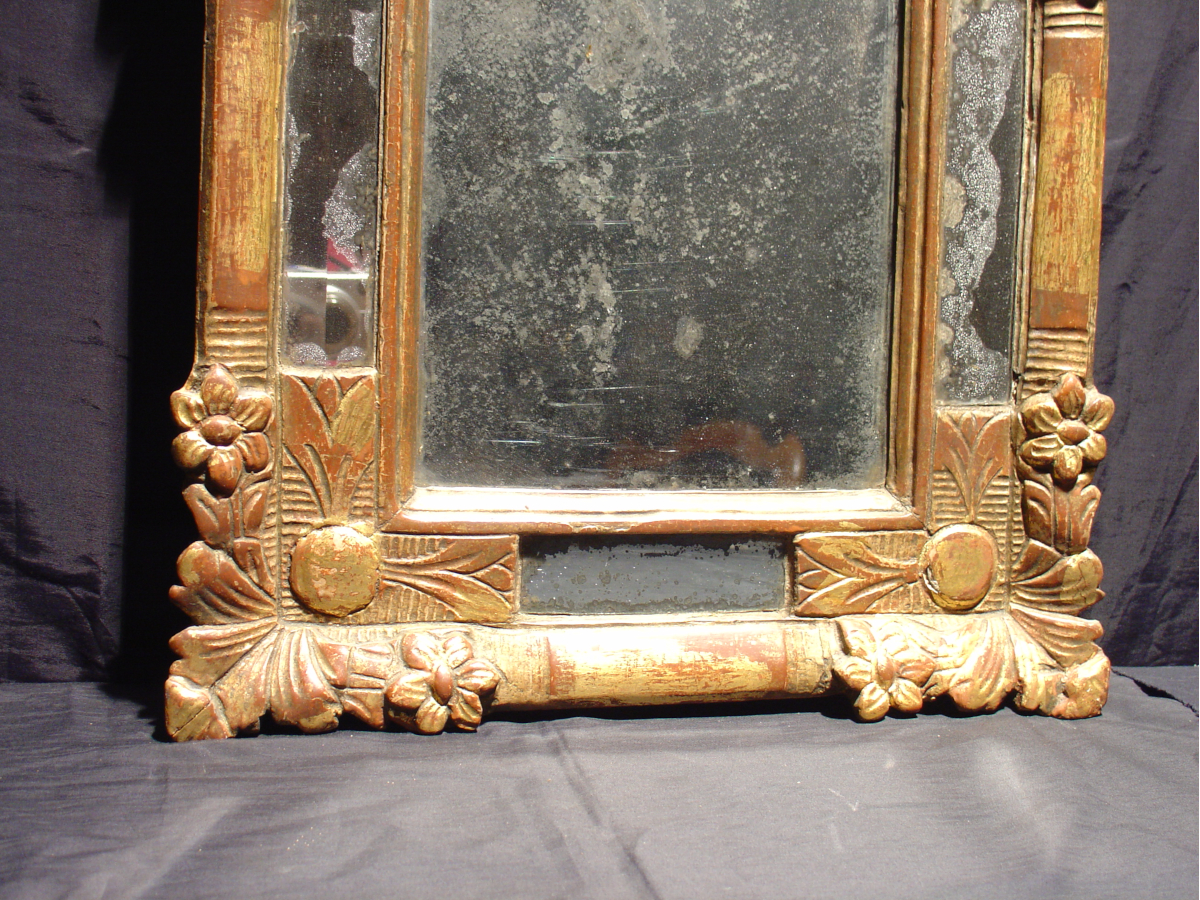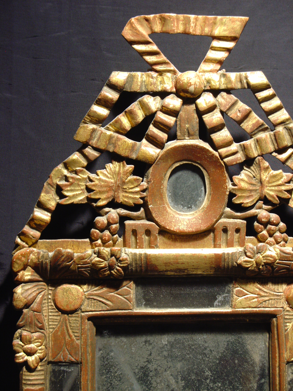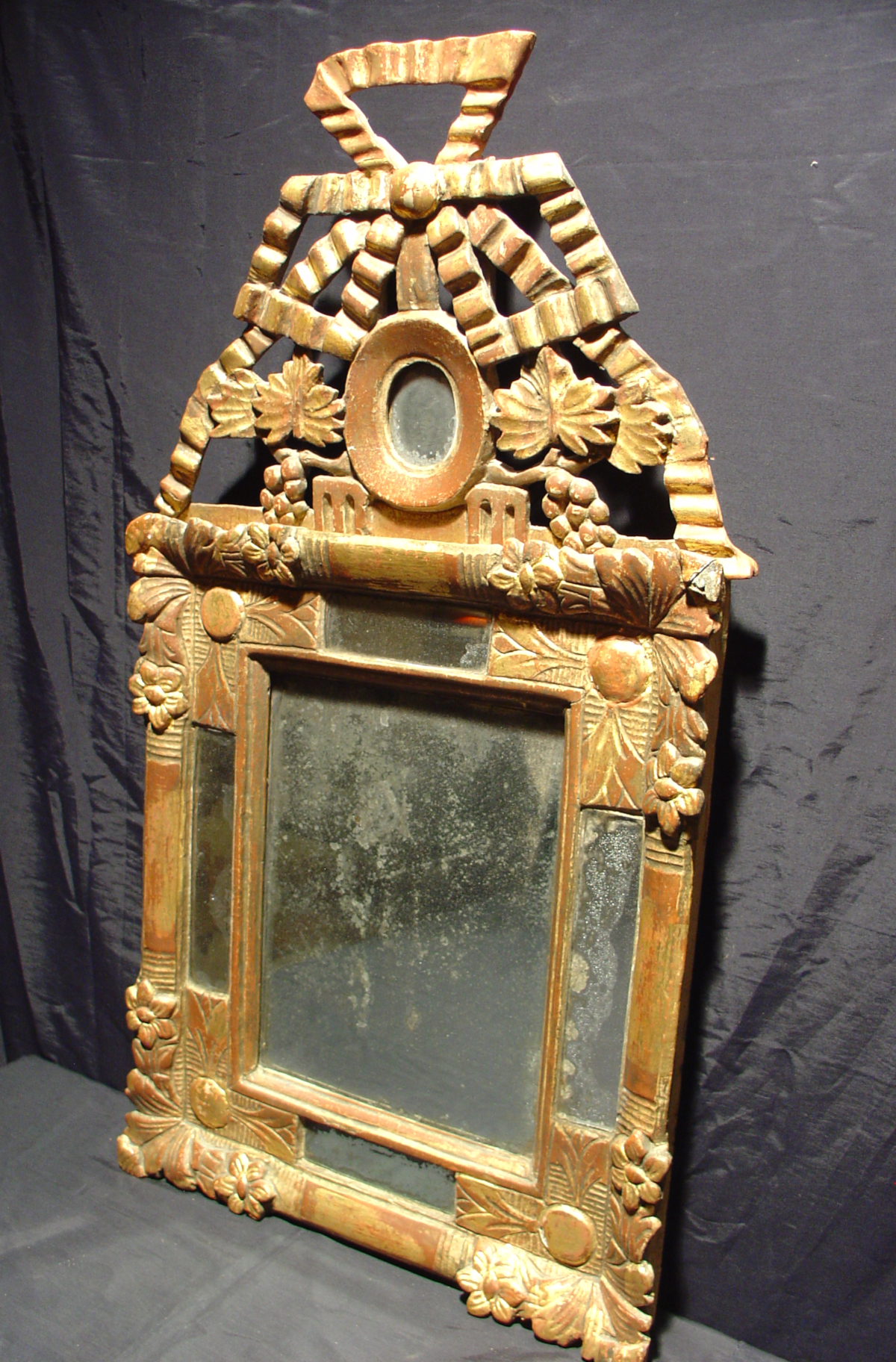 18th century Louis XVI small mirror , in gilded and carved wood, decorated with rubans, leaves, and grapes . Mercury miror .In very good original conditions