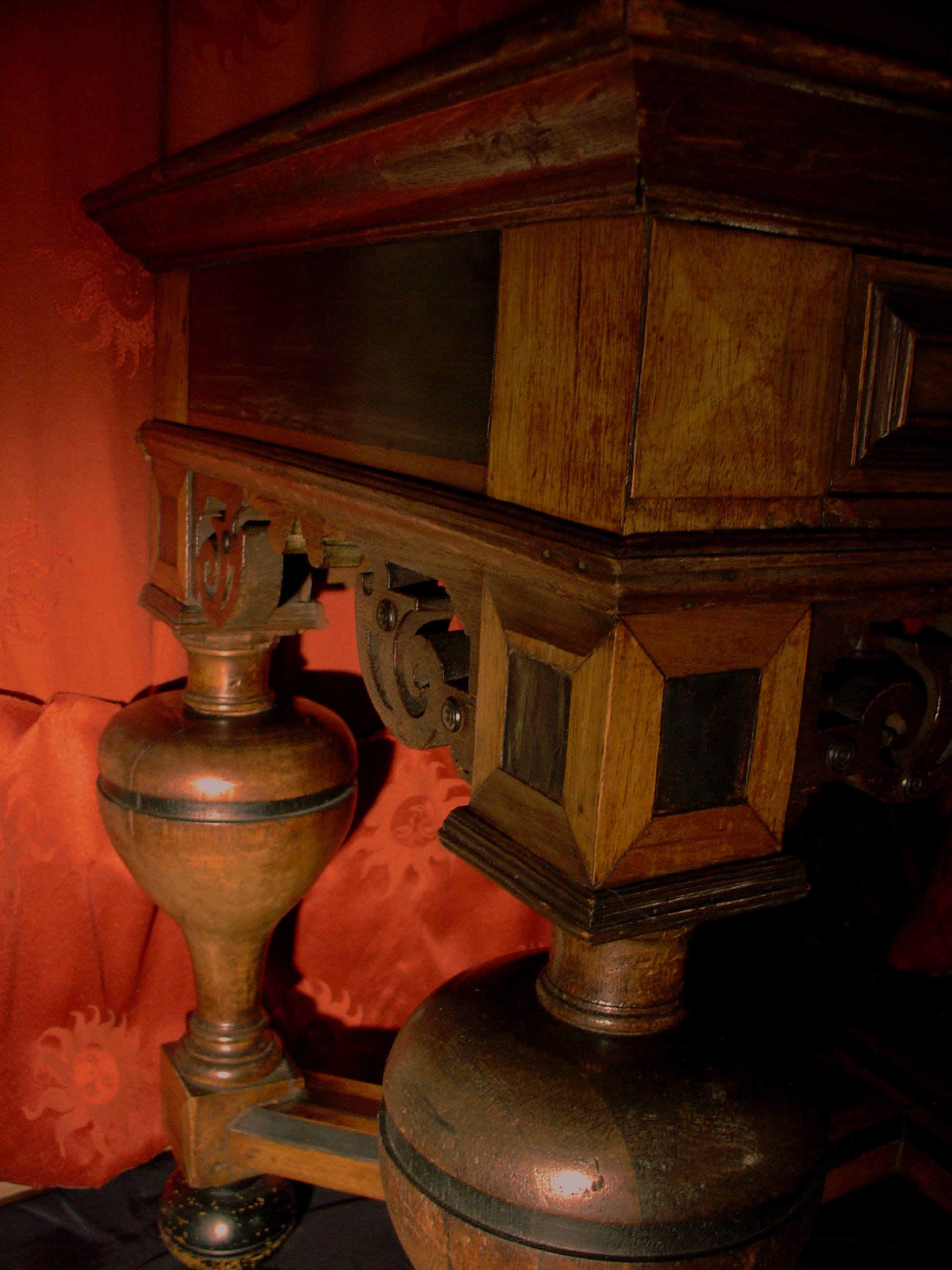 |  | 17th century oak table , Holland Little table, in oak with carved skirt on four big baluster legs ( bolpoot ) joined by stretchers. A drawer on the front. Decorated with veneers in faux ebony painted .. Some minor invisible veneer losses at the bottom .In good conditions More pictures on request L: 77 cm 30 in - l : 62 cm 24 in H: 79 cm 31 in See Details